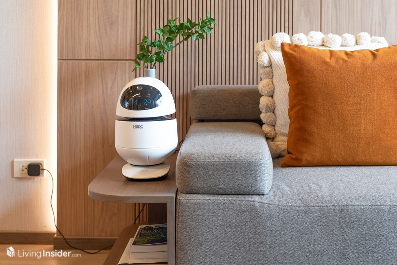 ความพิเศษยังไม่จบลงเพียงเท่านี้ นั่นก็เพราะว่าที่นี่มีน้องไข่ต้ม! หุ่นยนต์เพื่อนผู้ช่วยส่วนตัว หรือก็คือ Home Intelligent System นวัตกรรมอัจฉริยะ สามารถสั่งงานด้วยเสียง หรือผ่านแอปพลิเคชันบนสมาร์ทโฟน ที่ช่วยควบคุมระบบเปิด-ปิดไฟฟ้าภายในห้อง และเครื่องปรับอากาศ อีกทั้งภายในแอปยังมีการแจ้งเตือนเปิด-ปิดประประตูห้องและระเบียงอีกด้วย