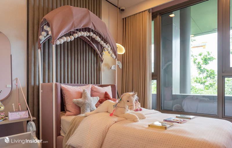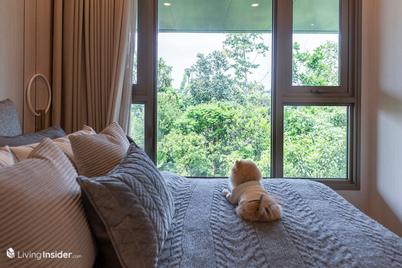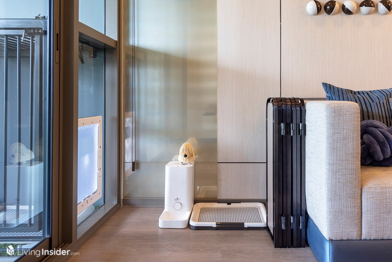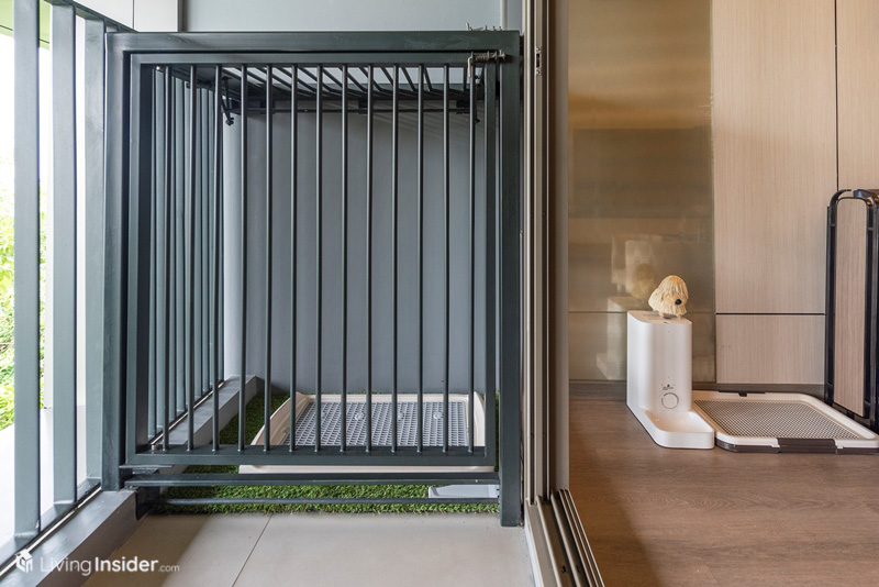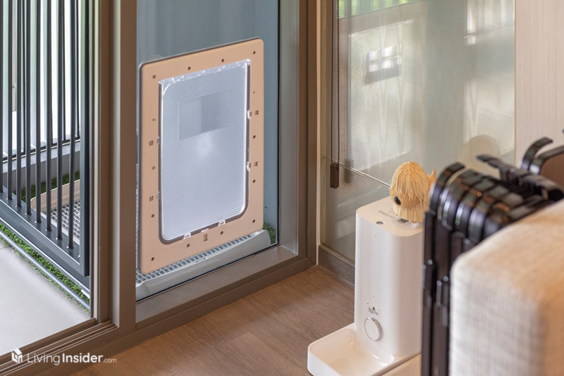 แต่ทีเด็ดที่แบบอยากนำเสนอมากที่สุดของห้องนี้คือ!!... มีการติดตั้ง Wicket door และ Pet cage บริเวณราวระเบียงด้านนอก เพื่อให้น้องหมาน้องแมวโดยเฉพาะเลย ทำให้เค้าอยากจะเข้าออกตอนไหน ก็ไม่ต้องกังวลว่าจะพลัดตกระเบียง รับประกันเลยว่าเด็กๆ ต้องชอบ คงออกไปนั่งมองนกทั้งวันชัวร์