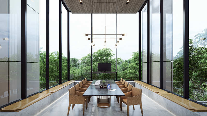 Meeting Room ห้องกระจกขนาดใหญ่ที่อยู่ได้ถึง 20 คน เน้นเฟอร์นิเจอร์ไม้รวมถึงคุมโทนให้ออกมาเป็นสีคาราเมล สามารถนั่งทำงานนั่งอ่านหนังสือไปพร้อมกับการชมวิวทิวทัศน์ภายนอกได้แบบเต็มสายตา และยังนำสัตว์เลี้ยงเข้ามาในห้องประชุมนี้ได้อีกด้วย เช่นเดียวกับห้อง Forest Lounge ที่นอกจากมองเห็นธรรมชาติแล้ว ยังเป็นพื้นที่ semi-outdoor สำหรับมินิบาร์บีคิวปาร์ตี้ ที่พาน้องๆ เข้าไปอยู่ร่วมกับเราได้เหมือนกัน