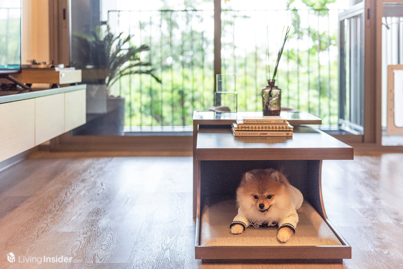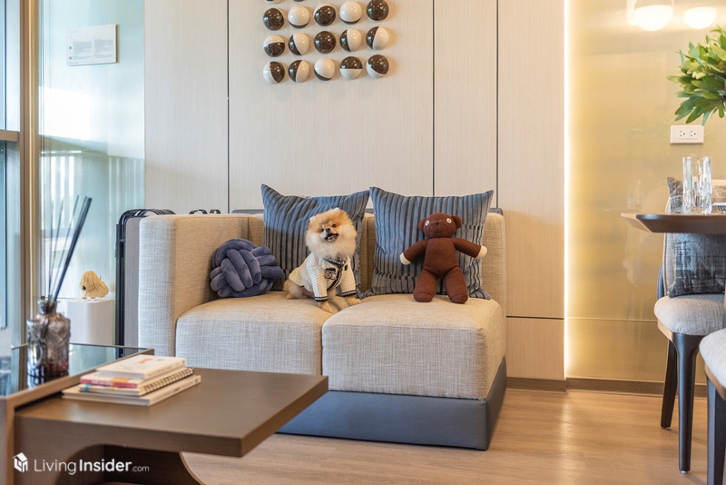 เพื่อไว้รับรองแขกที่มาเยี่ยม หรือตัวลูกบ้านจะมานั่งเล่นกับสัตว์เลี้ยงของตัวเองก็ทำได้เหมือนกัน เพราะทางโครงการได้เลือกวัสดุพื้นอย่างดีเพื่อให้น้องหมานอนได้อย่างสบายใจ หรือแม้แต่เฟอร์นิเจอร์อย่างโคมไฟตั้งพื้น ก็ได้มีการพันเชือกเอาไว้ให้น้องแมวลับเล็บได้ เป็นต้น