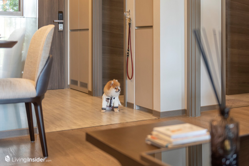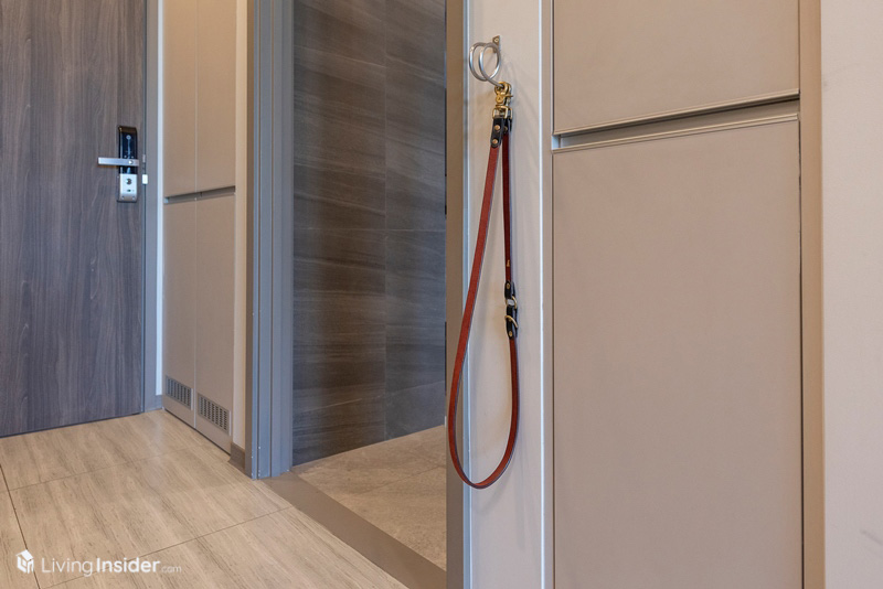 แต่ก่อนจะไปโซนอื่นๆ ภายในห้อง ติดกันกับห้องน้ำจะเป็นตู้เก็บรองเท้า และยังเป็นตู้เก็บของส่วนตัวของสัตว์เลี้ยง อีกทั้งยังมีการดีไซน์ Hook เพื่อใช้สำหรับคล้องสายจูง บอกแล้วว่าเรื่องเล็กๆ โครงการก็ไม่ได้มองข้าม