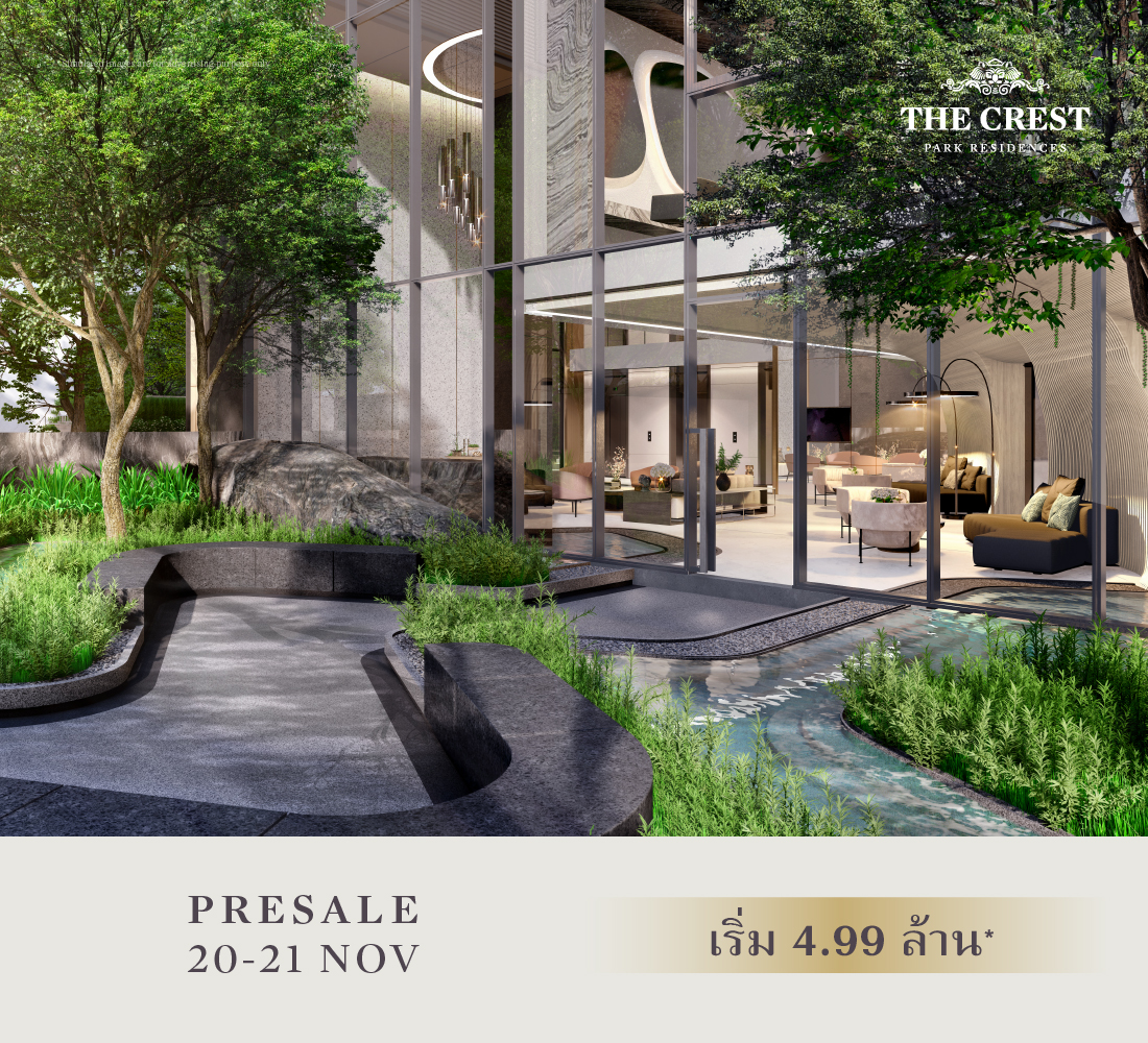 เตรียมพบกันในงาน PRESALE ลักชัวรี่คอนโดมิเนียม โครงการใหม่ The Crest Park Residences บนย่านห้าแยกลาดพร้าว วันที่ 20-21 พฤศจิกายน นี้ ความสมบูรณ์แบบของธรรมชาติสู่การตีความไลฟ์สไตล์เมืองแนวใหม่ที่ไม่เหมือนใคร ราคาเริ่ม 4.99 ล้านบาท* เลือกห้องวิวสวย สิทธิพิเศษสูงสุด 900,000 บาท พิเศษ 20 ยูนิตแรก จองพร้อมทำสัญญาในงาน รับ iPhone 13 Pro 128 GB* ลงทะเบียนรับสิทธิพิเศษในการได้ที่ https://m.scasset.com/6CnR