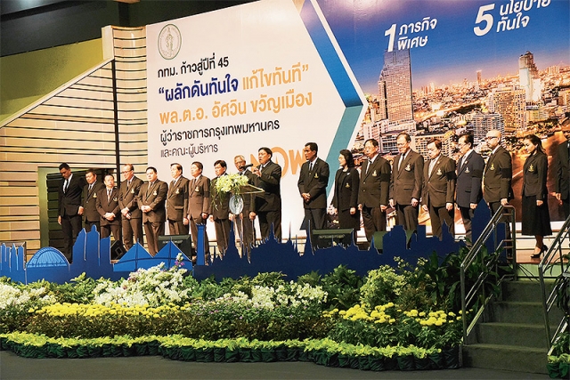 ในโอกาสวันครบรอบสถาปนา "กทม.-กรุงเทพมหานคร" 45 ปี ผู้ว่าราชการกรุงเทพมหานครคนใหม่ "พล.ต.อ.อัศวิน ขวัญเมือง" เจ้าของฉายา "ผู้ว่าฯ ม.44" ที่เพิ่งรับตำแหน่งผู้นำหมายเลข 1 ได้เพียง 2 เดือน นำทีมผู้บริหารชุดใหม่แถลงนโยบาย