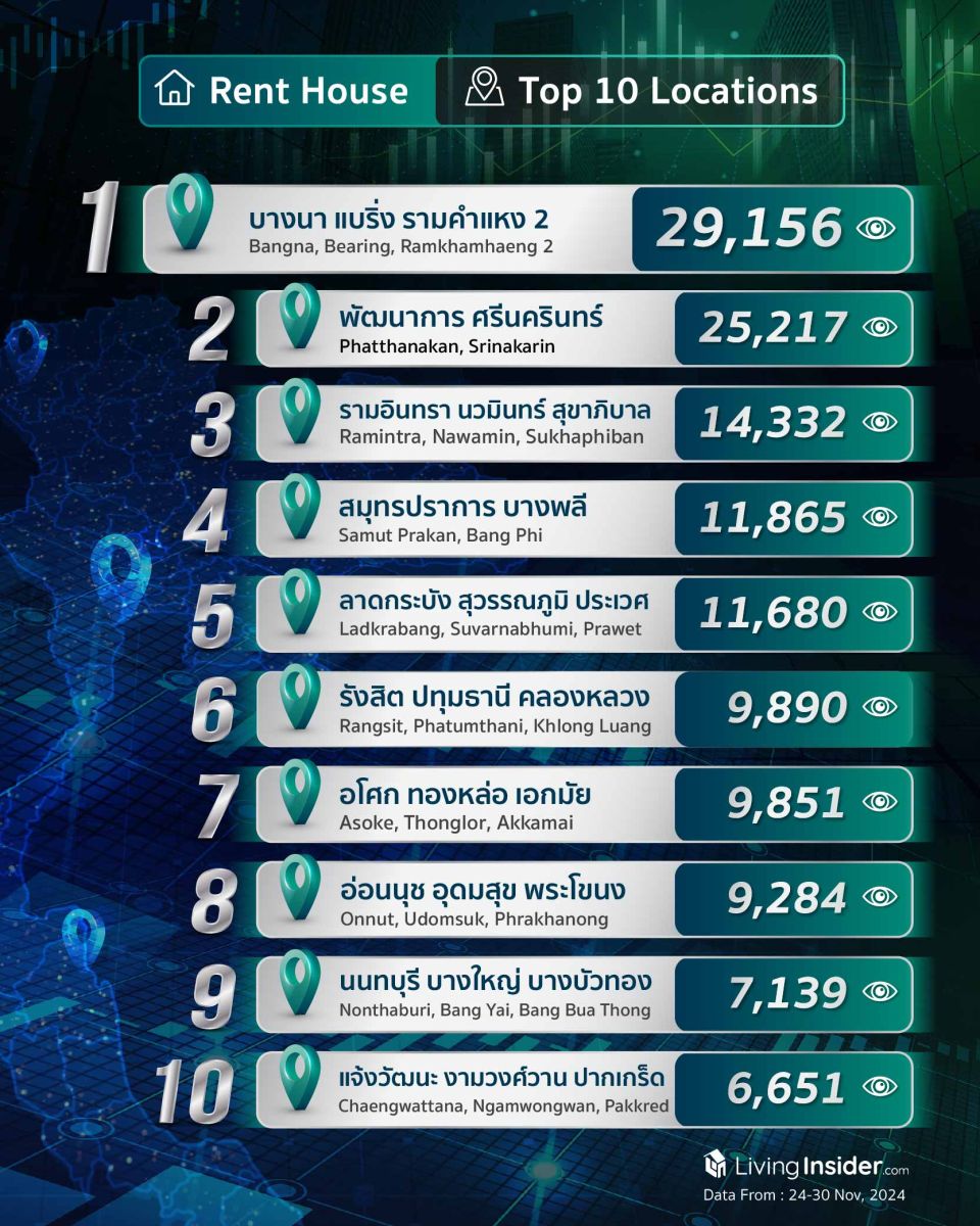 10 อันดับทำเล ►บ้าน ► หาเช่า