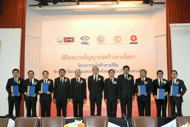สัญญาที่ 5 สัญญาจ้างก่อสร้างศูนย์ซ่อมบำรุงและอาคารจอดแล้วจร ผู้ชนะประมูล กิจการร่วมค้า CKST วงเงิน 4,831ล้านบาท สัญญาที่ 6 สัญญาจ้างออกแบบควบคุมงานก่อสร้างระบบราง ผู้ชนะการประมูล บมจ.ยูนิค เอ็นจิเนียริ่ง แอนด์ คอนสตรัคชั่น วงเงิน 3,690 ล้านบาท