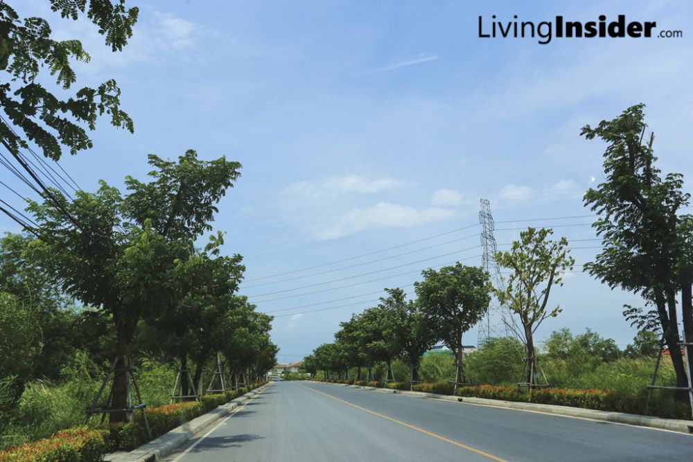 แลนด์ แอน เฮ้าส์ ลงทุนปลูกต้นไม้ตลอดถนนสองข้างทางเพื่อเข้าสู่หมู่บ้าน ดูสวยงามร่มรื่นเลยค่ะ เชื่อว่าไม่กี่ปีก็ร่มรื่นกลายเป็นอุงโมงค์ต้นไม้ที่สวยงาม