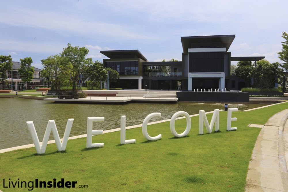 ยินดีต้อนรับสู่บ้านมัณฑนาคะ ที่นี่ออกแบบแลนด์สเคปได้สวยมากๆ ด้านซ้ายมือคือทะเลสาบขนาดใหญ่เพื่อให้เป็นปอดธรรมชาติให้ลูกบ้านทุกคน ที่เห็นอาคารสองชั้นหน้าตาโมเดิร์นนี้คือคลับ เฮ้าส์ ที่ตอนนี้ใช้เป็นสำนักงานขาย อยู่ในจุดที่เรียกว่าสวยที่สุดและดีที่สุด มาทำความรู้จักกับโครงการมัณฑนากันอย่างคร่าวๆ ที่คลับ เฮ้าส์ นี้ก่อนได้เลยคะ เราขึ้นไปยังชั้นสองกัน