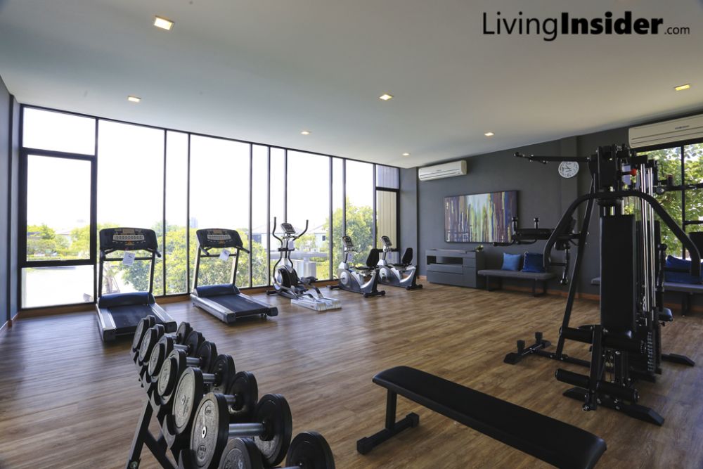ห้องฟิตเนสที่เพียบพร้อมไปด้วยเครื่องออกกำลังกายที่ได้มาตรฐาน ออกกำลังกายไปด้วย รับวิวธรรมชาติไปด้วย อย่างนี้ก็เพลินตา เพลินใจ ได้ทั้งสุขภาพกายและสุขภาพจิต