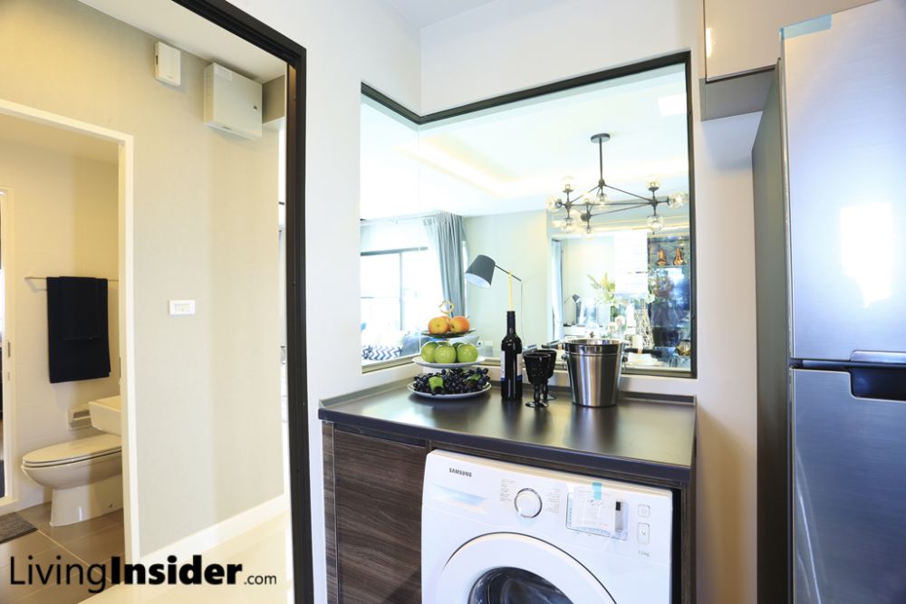 มุมจัดเตรียมอาหาร ด้านล่างเตรียมพื้นที่สำหรับจัดวางเครื่องซักผ้า
