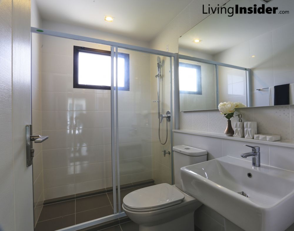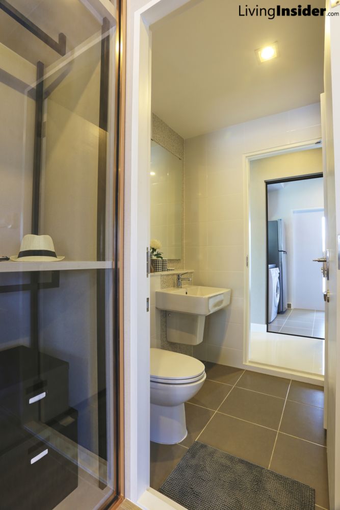 ห้องน้ำที่ต้องร่วมกันระหว่าง 2 ห้องนอนเล็ก แยกส่วนเปียกส่วนแห้ง
