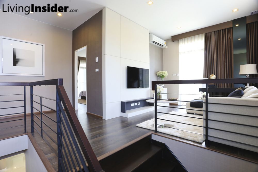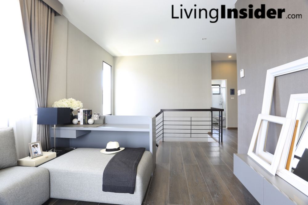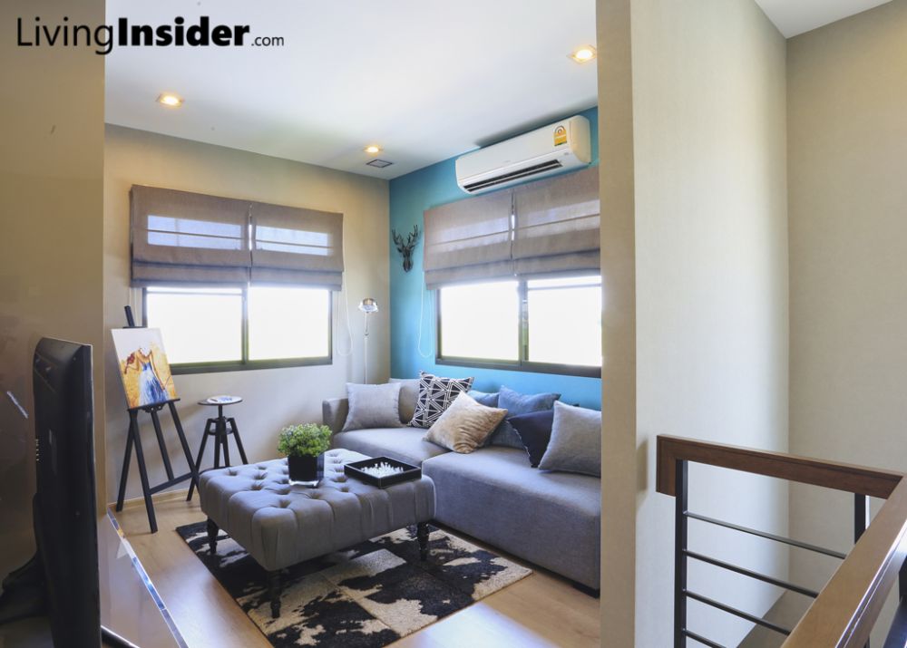 พื้นที่ห้องนั่งเล่น พักผ่อน บนชั้น 2 ประตูทางเข้าที่เห็นนี้คือส่วนของห้องมาสเตอร์ เบดรูม