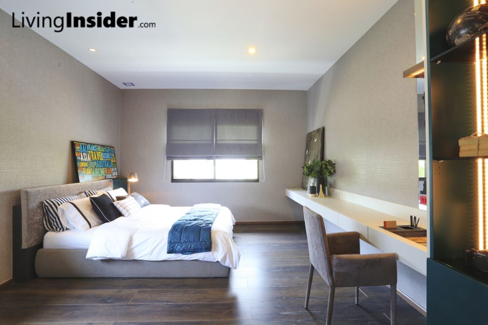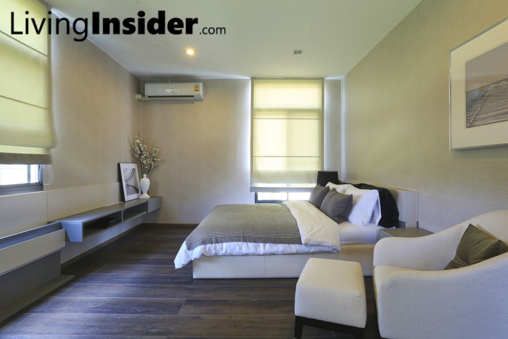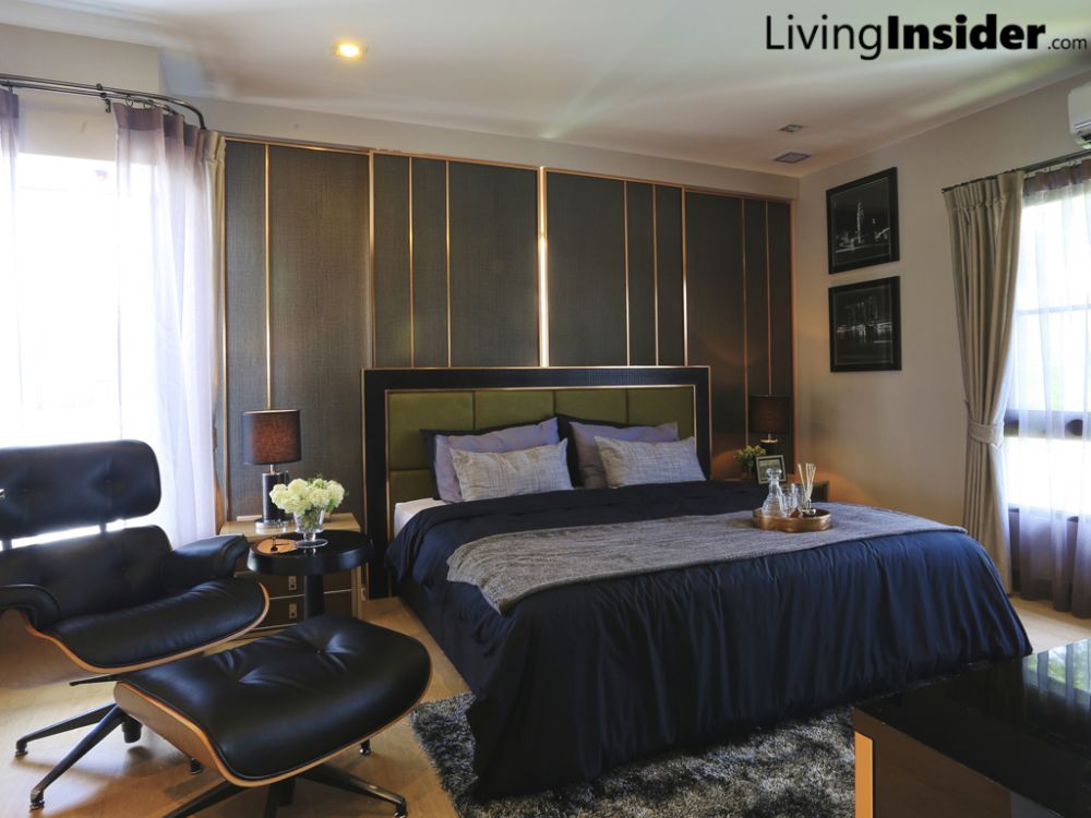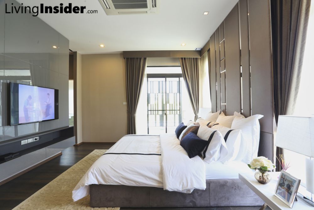 มาสเตอร์ เบดรูม ที่กว้างขวาง ด้านข้างมีประตูเปิดออกไปสู่ระเบียงด้านนอกที่สามารถใช้เป็นพื้นที่นั่งพักผ่อนได้ในยามเช้าและยามค่ำคืน
