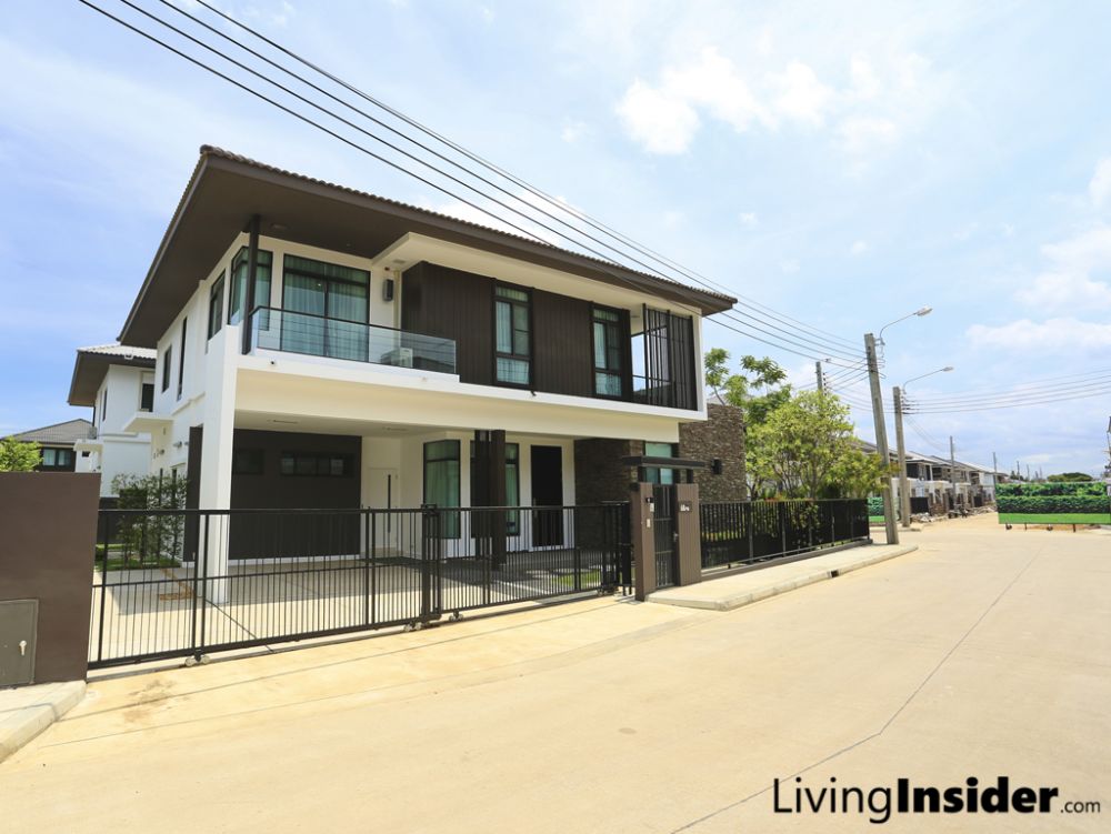 บ้านเน้นดีไซน์ทันสมัย ดูเรียบง่าย น่าอยู่ การเลือกวัสดุตกแต่งภายนอกมีความเป็นพรีเมี่ยม สมกับราคาบ้าน