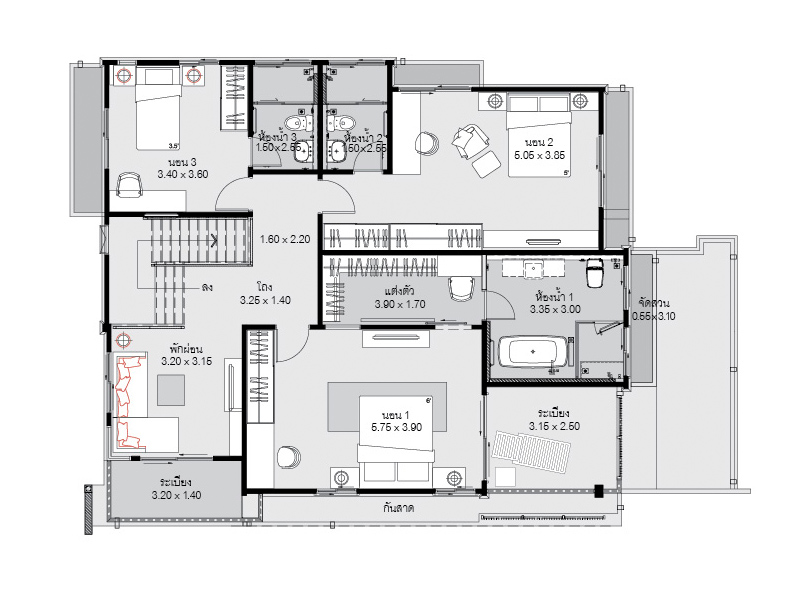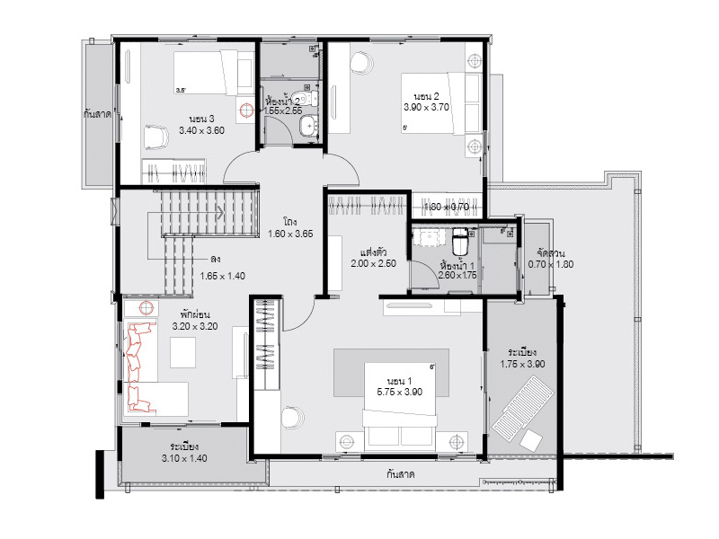 พื้นที่ระเบียงด้านข้างของห้องนอน