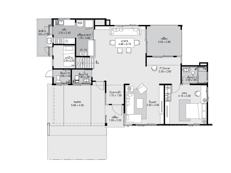 พื้นที่เหลือด้านข้างสามารถต่อเติมเป็นห้องหรือเรือนรับรองได้อย่างสบาย