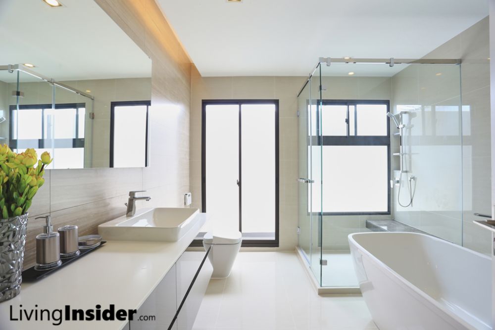 ห้องน้ำในห้องมาสเตอร์ เบดรูม ที่พิเศษสุด เพิ่มอ่างอาบน้ำและตู้กั้นอาบน้ำขนาดกว้าง