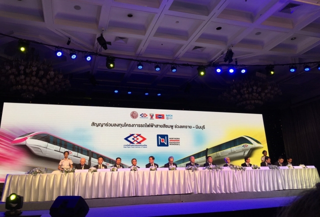 นายสมคิด จาตุศรีพิทักษ์ รองนายกรัฐมนตรี เป็นประธานพิธีลงนาม "โครงการรถไฟฟ้าสายสีชมพู ช่วงแคราย-มีนบุรี และสายสีเหลือง ช่วงลาดพร้าว-สำโรง"