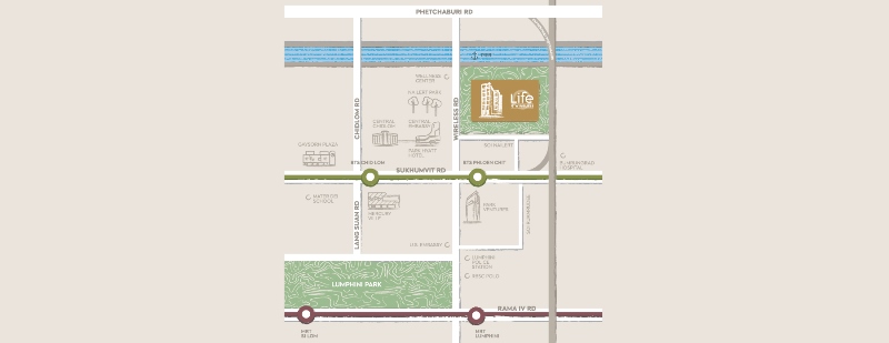 ถนนวิทยุ หรือ Wireless Road ถนนที่ถูกแปรผันกลายมาเป็นย่านธุรกิจชั้นนำที่รายล้อมไปด้วยพื้นที่สีเขียวของสวนสาธารณะ และสถานทูตมากมาย จึงทำให้วิว Skyline ของถนนใจกลางเมืองเส้นนี้ สวยอย่างน่าประทับใจ ลงตัวไปงานดีไซน์สถาปัตยกรรมไทยในรูปแบบทันสมัยของ Life One Wireless ที่โดดเด่นไปด้วยสไตล์การออกแบบที่สง่างามและเรียบง่าย แต่แฝงไปด้วยความทันสมัยและความหรูหราในเวลาเดียวกันแล้วคุณจะได้สัมผัสใกล้ชิดกับธรรมชาติตั้งแต่ชั้นล็อบบี้ไปจนถึงชั้นดาดฟ้าด้วยวิวแบบทุกมุม ทั้งหมดนี้จึงทำให้ Life One Wireless เป็นหนึ่งในโครงการที่น่าครอบครองมากที่สุดในกรุงเทพ