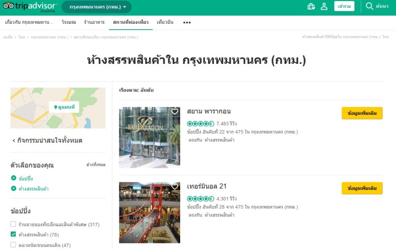 เว็บไซต์จัดอันดับสถานที่ท่องเที่ยวและโรงแรมชื่อดังของโลก tripadvisor จัดอันดับให้ สยามพารากอน คือห้างอันดับ 1 ของประเทศไทย