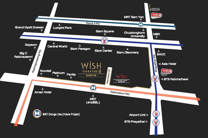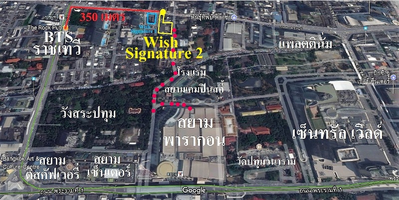 นอกจากนี้โครงการ WISH SIGNATURE II MIDTOWN SIAM ยังมีส่วนเชื่อมต่อกับ ซอยกรุงเทพการบัญชี ซึ่งซอยนี้เป็นซอยที่พิเศษมากๆ เพราะสามารถเดินทะลุไปสยามพารากอนได้เลย เพียงประมาณ 400 เมตร (ตามจุดสีชมพูในภาพครับ)