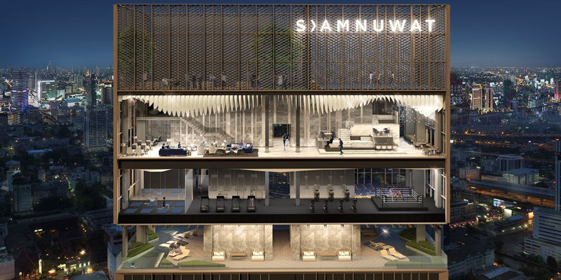 โดยมีจุดเด่นในเรื่องของพื้นที่ส่วนกลาง “Lifestyle Pods” พื้นที่อำนวยความสะดวก 4 ชั้นบนสุดของตัวอาคาร อาทิ
