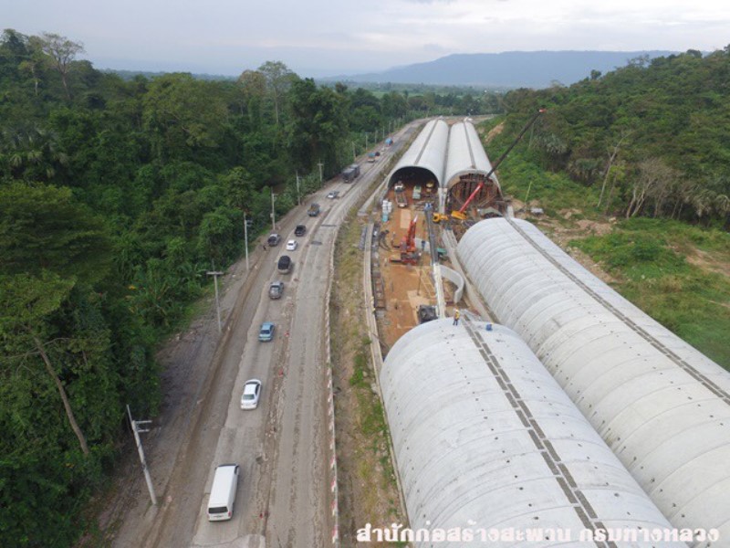 จากนั้นจะนำดินท้องถิ่นที่อยู่ในเกณฑ์คุณภาพดีนำมาถม และปลูกต้นไม้ให้สัตว์ได้อาศัย ส่วนรถยนต์ก็วิ่งลอดอุโมงค์ ซึ่งมีความกว้างอุโมงค์ละ 2 ช่องจราจร นอกจากนี้ ยังมีการก่อสร้างทางยกระดับ ทางสัตว์ป่าลอดทางหลวง (Wildlife Underpass) ระยะทาง 570 เมตร ขณะนี้ก่อสร้างสะพานขนาด 2 ช่องจราจรเสร็จแล้ว 1 ฝั่ง เหลืออีก 1 ฝั่งอยู่ระหว่างก่อสร้าง ซึ่งตามสัญญาทั้งโครงการจะแล้วเสร็จ 8 ธ.ค. 2561