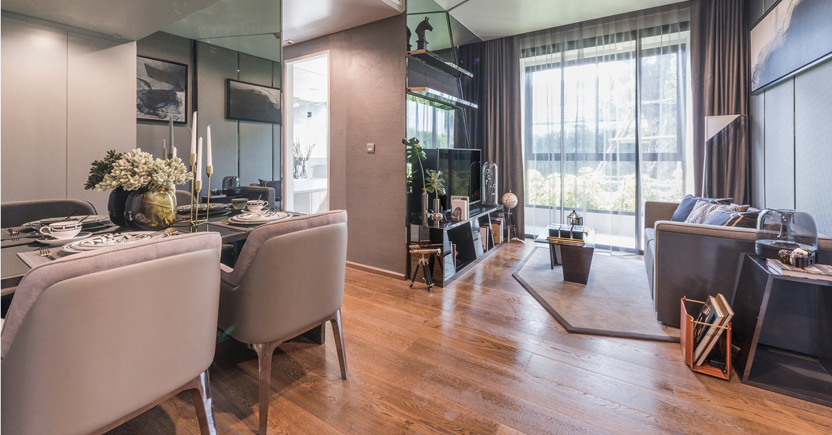 เมื่อก้าวเท้าเข้าสู่ห้อง ที่ผมชอบเลยคือ First Sight ของห้อง สิ่งแรกที่เราจะเห็นหลังจากเปิดประตูเข้าห้องมาเป็นห้องนั่งเล่นพร้อมกระจกบานใหญ่รับวิวและแสงแดดข้างนอกได้อย่างเต็มประสิทธิภาพ ยิ่งไปกว่านั้นการติด Mirror Wall ช่วยทำให้ห้องกว้างขึ้นไปอีกระดับ