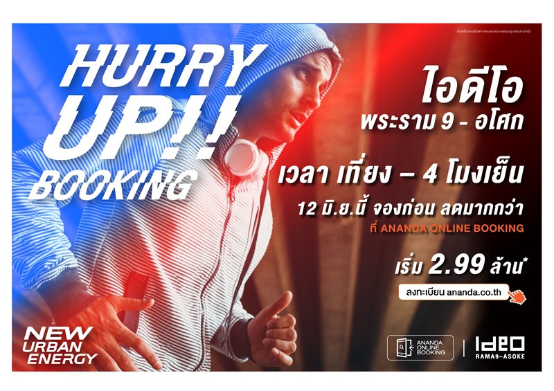 12 มิถุนายนนี้ เปิดให้จองโครงการใหม่ ไอดีโอ พระราม 9 - อโศก มาครบๆ พร้อมด้วยห้อง Hybrid ที่หลายๆคนรอคอย เวลา เที่ยง - 4 โมงเย็น ผ่านทาง ANANDA ONLINE BOOKING เริ่ม 2.99 ล้าน*