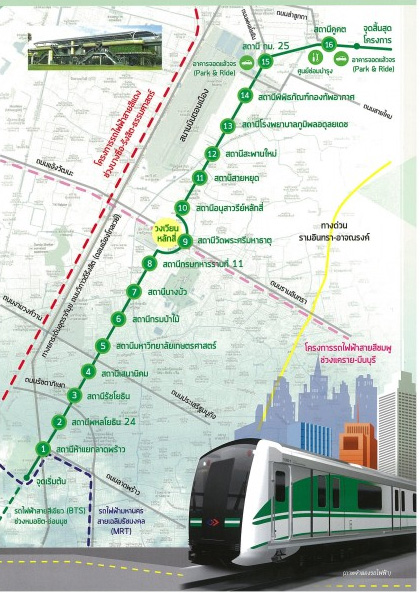 จากแนวเส้นทางที่พาดผ่านพื้นที่ตั้งแต่เขตพญาไท-จตุจักร-หลักสี่-ดอนเมือง ของกรุงเทพฯ และ อ.ลำลูกกา จ.ปทุมธานี ตัดผ่านถนนสายหลักทั้งดินแดง สุทธิสาร งามวงศ์วาน (ทางหลวงแผ่นดินหมายเลข 302) แจ้งวัฒนะ (ทางหลวงแผ่นดินหมายเลข 304) และ ถ.พหลโยธิน (ทางหลวงแผ่นดินหมายเลข 1)