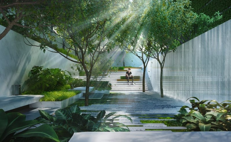 นอกจากสวนแนวตั้งภายนอกอาคารที่ทำหน้าที่เสมือนด่านคัดกรองอากาศชั้นแรกแล้ว ภายในโครงการยังมีพื้นที่พักผ่อนสีเขียวซ่อนตัวอยู่ในมุมต่างๆ ของโครงการ ให้คุณได้มีพื้นที่พักผ่อนเดินเล่นอีกด้วย