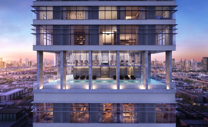 นอกจากนี้ยังมีพื้นที่ส่วนกลางอื่นๆ ที่โชว์ศักยภาพของงานดีไซน์อย่างเต็มที่สมกับที่ได้รับการการันตีด้วย 2 รางวัล โชว์ให้เห็นถึงวิวเมืองในทุกมุมมอง จากภาพเป็นพื้นที่ส่วนกลางบริเวณสระว่ายน้ำที่สามารถว่ายชมวิวได้รอบทุกด้าน รวมทั้งด้านบนที่เป็นห้องฟิตเนสลอยฟ้าขนาดใหญ่ หรือจะมองเลยฟิตเนสขึ้นไปอีกนิดจะเห็นได้เลยว่า ทางโครงการออกแบบโซนที่พักให้เกือบทุกห้องเป็นห้องมุมได้อย่างแท้จริง