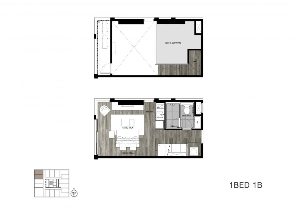 1 ห้องนอน ขนาด 29.7 - 33.59 ตร.ม.
