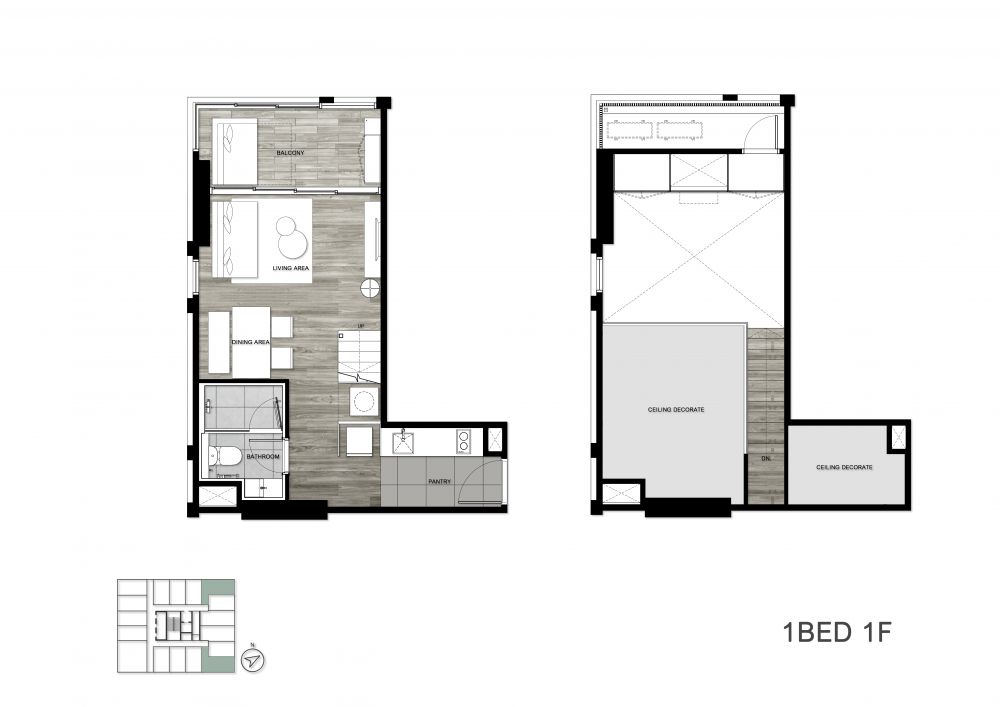1 ห้องนอน+ ขนาด 37.52 - 39.8 ตร.ม.