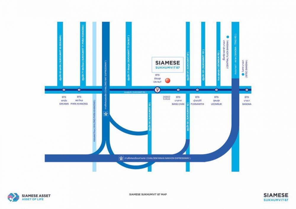 Siamese สุขุมวิท 87 เป็นคอนโดมิเนียมแบบ Freehold สูง 25 ชั้น จำนวน 372 ยูนิต บนพื้นที่ 1-3-83 ไร่ ที่อยู่ระหว่างรถไฟฟ้าสองสถานี คือ รถไฟฟ้าสถานีอ่อนนุช 450 เมตร และสถานีบางจาก 480 เมตร ทำเลใกล้รถไฟฟ้าใน ราคาต่อตร.ม. 139,000 - 160,000 บาท ถือว่าเป็นโลเคชั่นที่คุ้มค่ากับการลงทุนมากๆ ข้อดีอยู่ตรงที่ช่วงเวลาไพร์ไทม์อยากเลี่ยงสถานีอ่อนนุช ก็สามารถเลือกขึ้น-ลงรถไฟฟ้าสถานีบางจากก็ช่วยให้สบายขึ้นอีกนิด