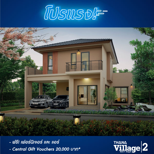 ธนาวิลเลจ 2 พระราม 5 – บางใหญ่ โครงการบ้านเดี่ยวสไตล์โมเดิร์นทรอปปิคอล 4 ห้องนอน สงบ ส่วนตัว เพียง 86 ครอบครัว ใกล้เซ็นทรัลเวสเกต และรถไฟฟ้าสายสีม่วง รับโปรโมชั่น ปิดโครงการ บ้านหน้าสวนส่วนกลาง one-price 4.99 ล้านบาท ฟรี! เฟอร์นิเจอร์ แถมเครื่องปรับอากาศ + Central Gift Vouchers 20,000 บาท*