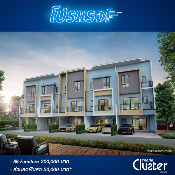 ธนาคลัสเตอร์ เวสท์เกท Premium LOFT Town บ้าน 3 ชั้น ดีไซน์ใหม่ เพียงหนึ่งเดียวที่ครบกว่าด้วยฟังก์ชั่นที่ปรับเปลี่ยนได้ บนพื้นที่ใช้สอยมากสุด พร้อม สโมสร สระว่ายน้ำ ใกล้เซ็นทรัลเวสเกต และรถไฟฟ้าสายสีม่วง เริ่ม 3.79 ล้านบาท พิเศษรับ SB Furniture 200,000 บาท พร้อมส่วนลดเงินสด 50,000 บาท*