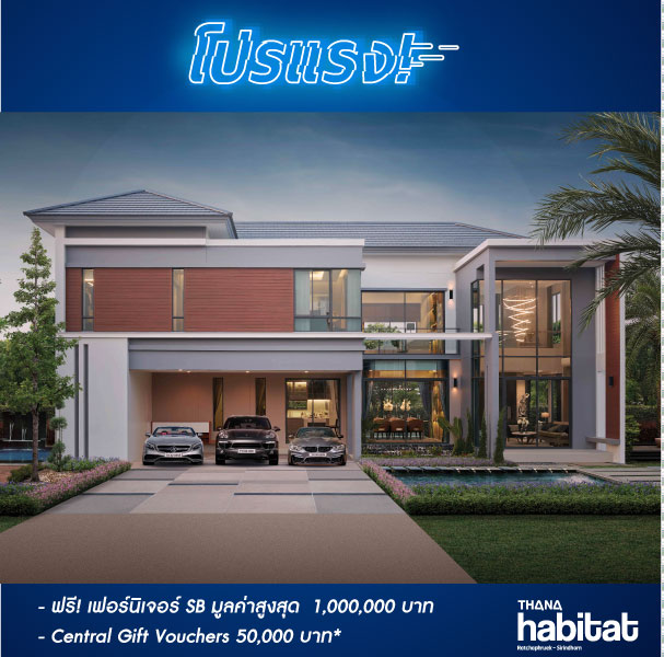 ธนาฮาบิแทต ปิ่นเกล้า - สิรินธร เพียงหนึ่งเดียว บ้านเดี่ยวหรูเหนือระดับ สไตล์ Double Courtyard รายล้อมด้วยธรรมชาติ ส่วนตัวที่สุดเอกสิทธิ์เพียง 95 ยูนิตสัมผัสความสุขจากธรรมชาติ...ได้มากกว่าใคร ใกล้ทางด่วน เดินทางสะดวกเพียง 15 นาที ถึงจตุจักร ราคาเริ่มต้นที่ 9-15 ล้านบาท ฟรี! เฟอร์นิเจอร์ SB มูลค่าสูงสุด 1,000,000 บาท + Central Gift Vouchers 50,000 บาท*