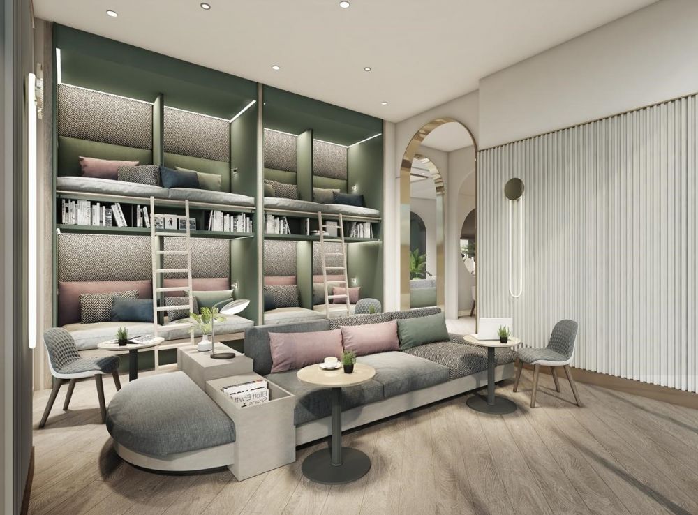 ถัดมาคือ Co-Working & Napping Space น่าสนใจตรงมี Pods สำหรับนอนเล่น อ่านหนังสือ นั่งทำงาน สามารถเปลี่ยนบรรยากาศจากอยู่ในห้อง มาตรงส่วนนี้ได้ครับ