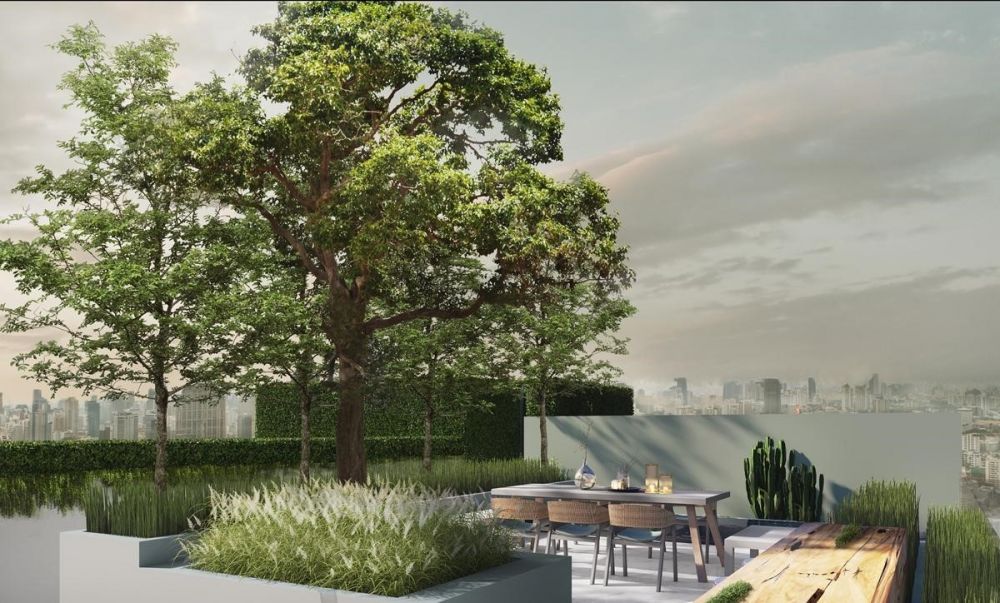 สำหรับพื้นที่สีเขียวแบ่งเป็น 2 ส่วนคือ Co-Living Garden บริเวณสระว่ายน้ำ และ Sunset Garden บนดาดฟ้าอาคาร B ใครที่ชอบความเป็นส่วนตัว บรรยากาศโรแมนติกนิดๆ รับรองไม่ผิดหวังครับ