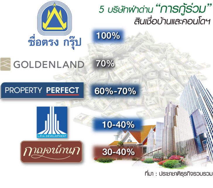 สอดคล้องกับ ดร.เกษรา ธัญลักษณ์ รองประธานเจ้าหน้าที่บริหาร บริษัท เสนาดีเวลลอปเม้นท์ จำกัด (มหาชน) กล่าวว่า ลูกค้าที่เป็นสัญญากู้ร่วมมีเยอะ ยิ่งกลุ่มสินค้าราคาไม่แพงยิ่งกู้ร่วมเยอะเพราะกู้คนเดียวไม่ไหว ใช้วิธีให้ญาติมากู้ด้วย เรื่องนี้ทางเสนาฯ กำลังรอคำตอบจากธนาคารเหมือนกัน เพราะอยากรู้ว่าดีกรีของการกู้ร่วมชี้วัดกันอย่างไร เพื่อจะได้วางแผนการขายอสังหาฯ ได้ถูกต้อง