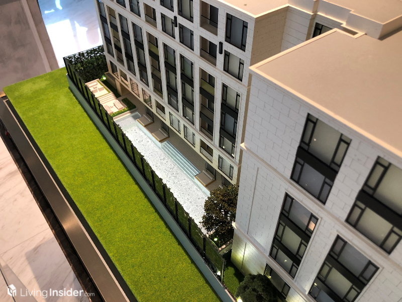 เพิ่มความเป็นส่วนตัวให้กับผู้อยู่อาศัย ด้วยการสร้าง Green Wall สูงถึง 9 ม. ครอบคลุมชั้น 1-3 ของอาคาร เพื่อกันการมองเห็นจากคนภายนอก