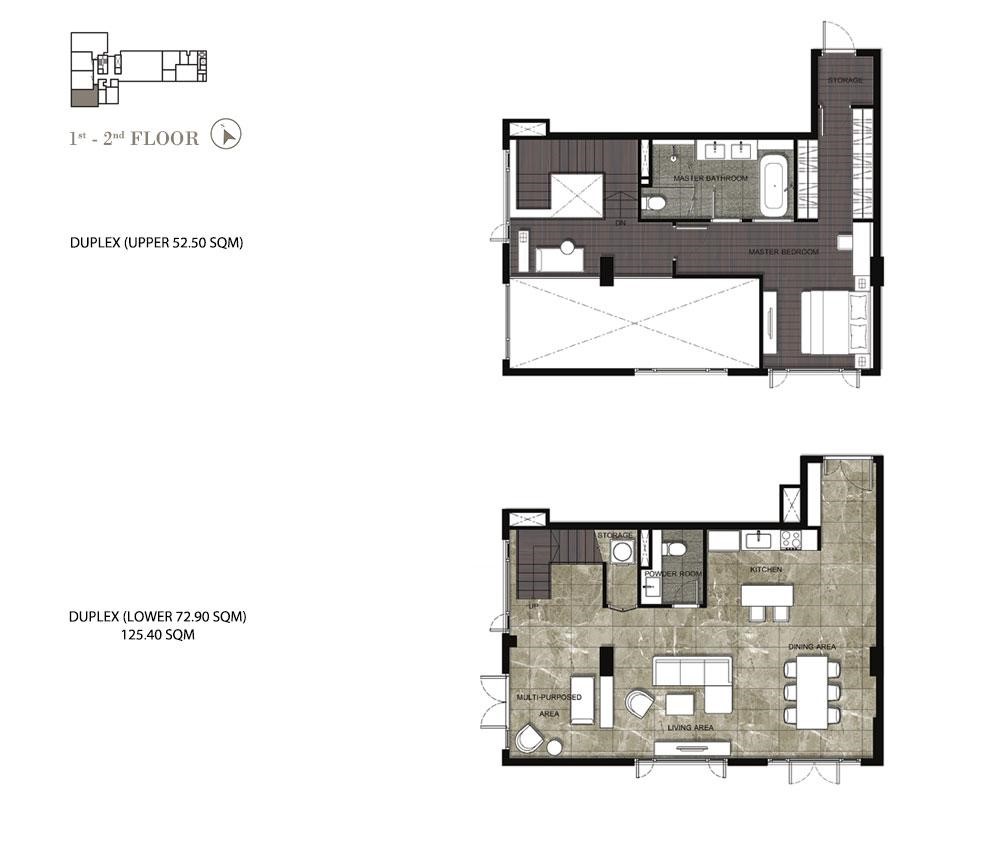 ยูนิตพักอาศัยเริ่มต้น 1-Bedroom (70-77 ตร.ม.) ส่วนใหญ่เป็น 2-Bedroom (104-139 ตร.ม.), 3-Bedroom มีเพียง 5 ยูนิต (178.9 ตร.ม.) และ Duplex (110 - 221.6 ตร.ม.) เริ่มจากชั้น 1 ซึ่งมีด้านที่ติดกับสวนสีเขียว และชั้น 6-7 ที่มีระเบียง Outdoor ส่วนตัวขนาดใหญ่ยื่นออกไปด้านหน้าอาคารเลย เห็นมั้ยครับพื้นที่ใช้สอย ‘อารมณ์บ้าน’ กลางทองหล่อเลยทีเดียว