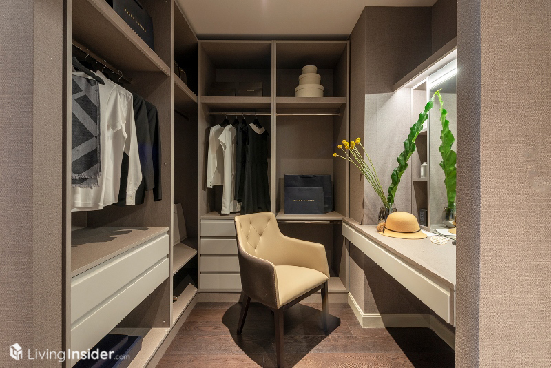 ถัดมาเป็นโต๊ะแต่งหน้าแต่งตัว และ Walk-In Closet ที่ทางโครงการทำให้ดูเป็นตัวอย่าง ว่าสามารถเก็บเสื้อผ้าได้เยอะมาก