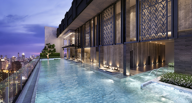 The Sky Pool with hydrotherapy & Kid’s pool สระว่ายน้ำยาว 50 เมตร มีวารีบำบัด ใช้น้ำนวดส่วนต่างๆ