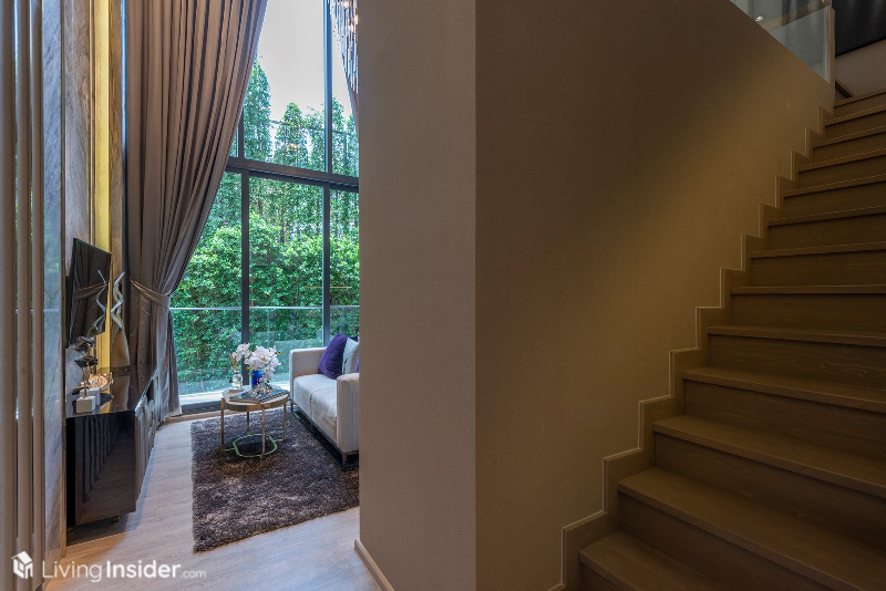 เมื่อเข้าสู่ห้อง เราจะพบกับบันไดอยู่ทางขวามือ ส่วนซ้ายมือบิวท์เป็นตู้เก็บของเก็บรองเท้าได้แบบเหลือเฟือ