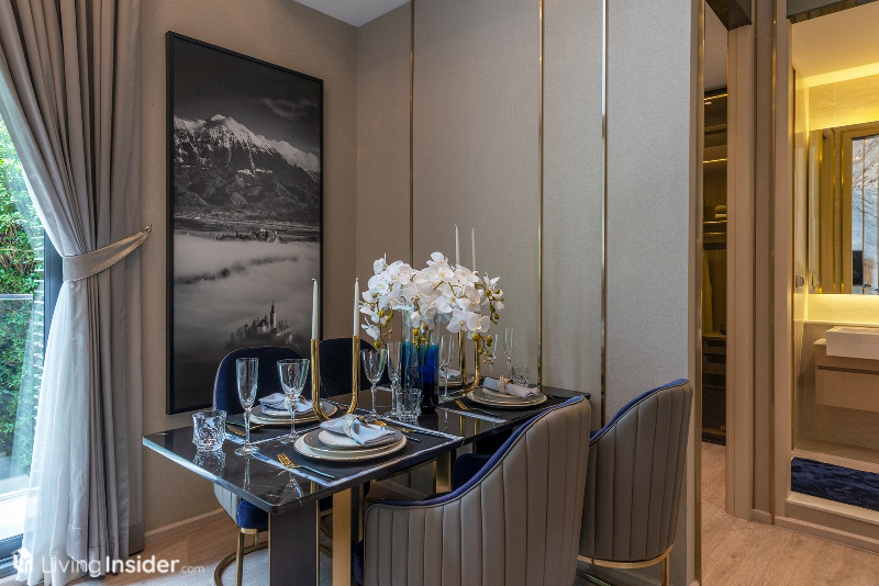 และตรงกันข้ามวางโต๊ะกินข้าวได้ 4 ที่นั่ง ซึ่งก็ไม่ได้ทำให้พื้นที่ดูแคบแต่อย่างใด