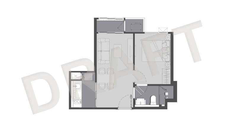 1 ห้องนอน ขนาดพื้นที่ 31.5 - 35 ตารางเมตร