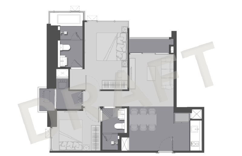 2 ห้องนอน ขนาดพื้นที่ 51.5- 69.5 ตารางเมตร