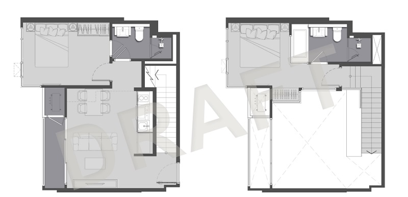 1 ห้องนอน (ดูเพล็กซ์) ขนาดพื้นที่ 50 ตารางเมตร