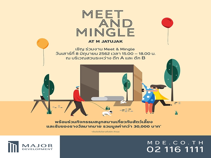 ดีเวลลอปเปอร์ที่มุ่งมั่นและทุ่มเทเรื่องคอนโดฯ เลี้ยงสัตว์ได้จริงจังต้องค่ายนี้เท่านั้น เมเจอร์ ดีเวลลอปเม้นท์ ล่าสุด คุณเพชรลดา พูลวรลักษณ์ กรรมการบริหาร สั่งทีมงานเนรมิตพื้นที่คอนโดฯ เอ็ม จตุจักร สร้างสรรค์จัดงานคนรักสัตว์เลี้ยงสุดยิ่งใหญ่แห่งปี “MEET & MINGLE” งานเดียวที่ฟรี! ตั้งแต่อาหารเครื่องดื่ม ตลอดจนบริการตรวจสุขภาพสัตว์เลี้ยงจากโรงพยาบาลสัตว์ทองหล่อ
